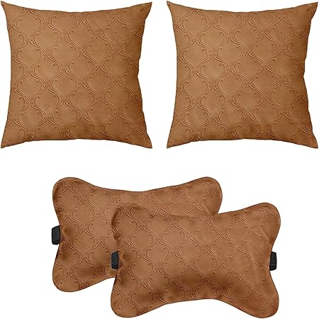 Car Cushion Pillows For Neck Back And Seat Rest Pack Of 4 Embossed Leatherlike Fabric 100 Polyester Material 2 Pcs Of Bone Neck Rest Size 6x10 Inches 2 Pcs Of Car Cushion